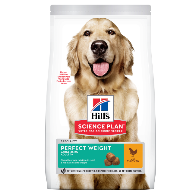 Hill’s Science Plan Perfect Weight Large Adult Dog Food has a unique blend of ingredients and low-fat content to help maintain your dog’s weight at a healthy level. formulated to help your dog achieve a healthy weight for longer life expectancy.